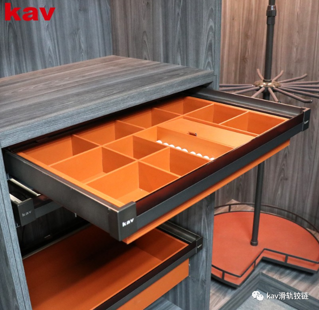 我们kav的产品也是从早期的成品家具五金,从铰链滑轨专家也发展到全屋定制配套五金,智能五金专家,最早我们可能就是根据客户的需求来定制五金,现在全屋定制家具这块我们有一系列的解决方案。